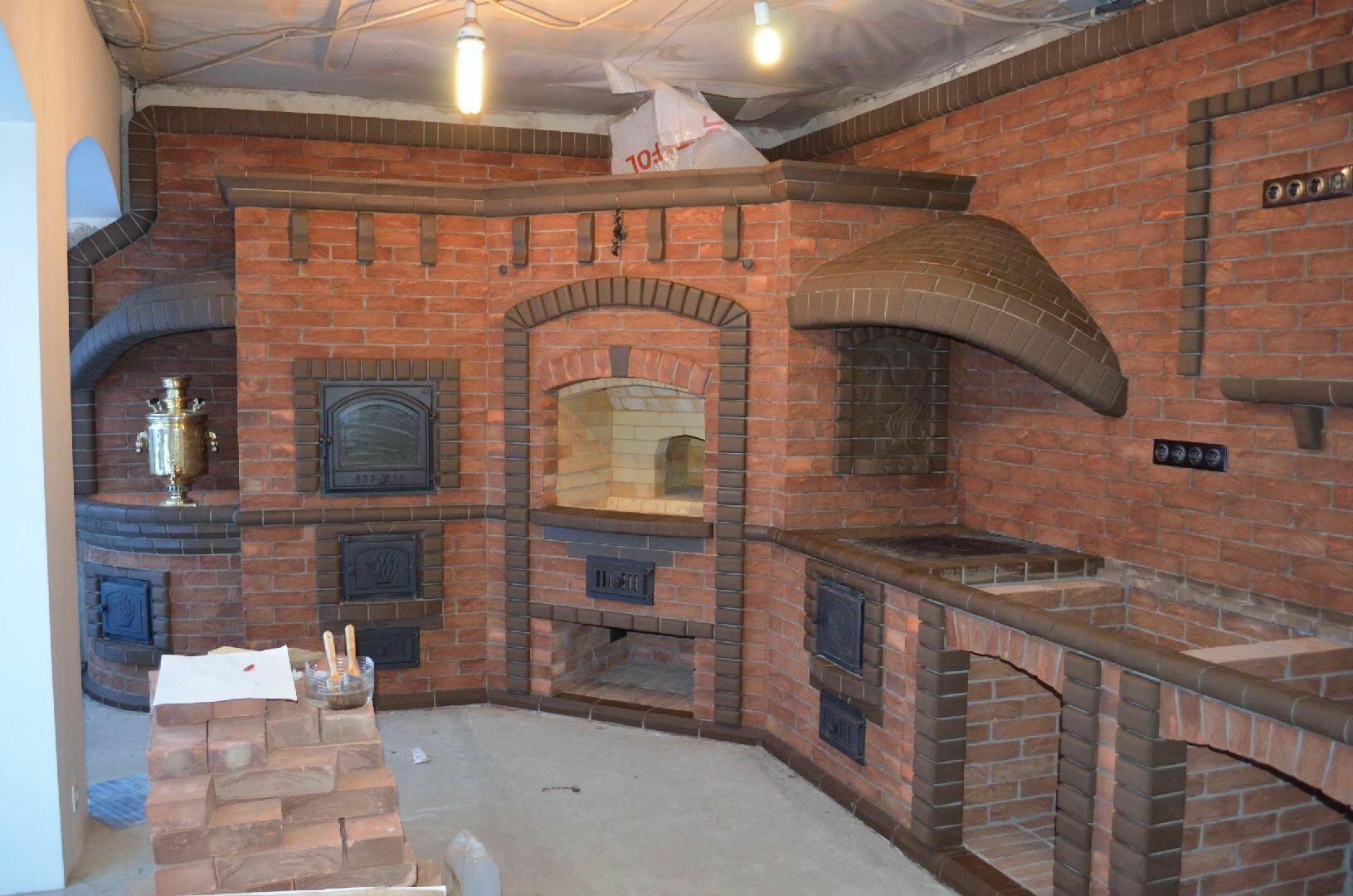 Мечта из детства — камин дома, в загородном доме или на даче. С развитием технологий реализовать мечту становится всё проще. А с командой наших мастеров это ещё и выгодно. На сегодня мы предлагаем самые разные варианты каминов: открытые и закрытые, газовые и электрические, сделанные из металла или кирпича. Уже в зависимости от этого мастер предложит варианты отделки и декора. Таким образом, изделие будет не только практичным, но и модным. Оно внесёт огонька в вашу жизнь. Кстати, на ваш выбор колосниковое или подовое горение. Разница лишь в подачи воздуха. В первом случае это происходит снизу, а во втором сбоку. Соответственно и огонь горит по-разному, но одинаково завораживающе. Новинка сезона, которая не оставляет равнодушными никого, камины встраиваемые в стену беседки. Мы сделаем так, что они не будут выделяться и гармонично впишутся в дизайн строения. Такое совмещение пойдёт вам только на пользу — двойное удовольствие от отдыха обеспечено. Плюс экономия ваших средств за счёт уменьшения квадратуры. Камин — для людей серьезных. Прежде чем приступить к работе, нужно просчитать все нюансы. Например, если камин будет располагаться в доме, то важен общий интерьер, фундамент, количество этажей, какую площадь ему предстоит обогревать и, наконец, куда будет выводиться дымоход, Но работая с нами, ваши деньги не улетят в трубу.
