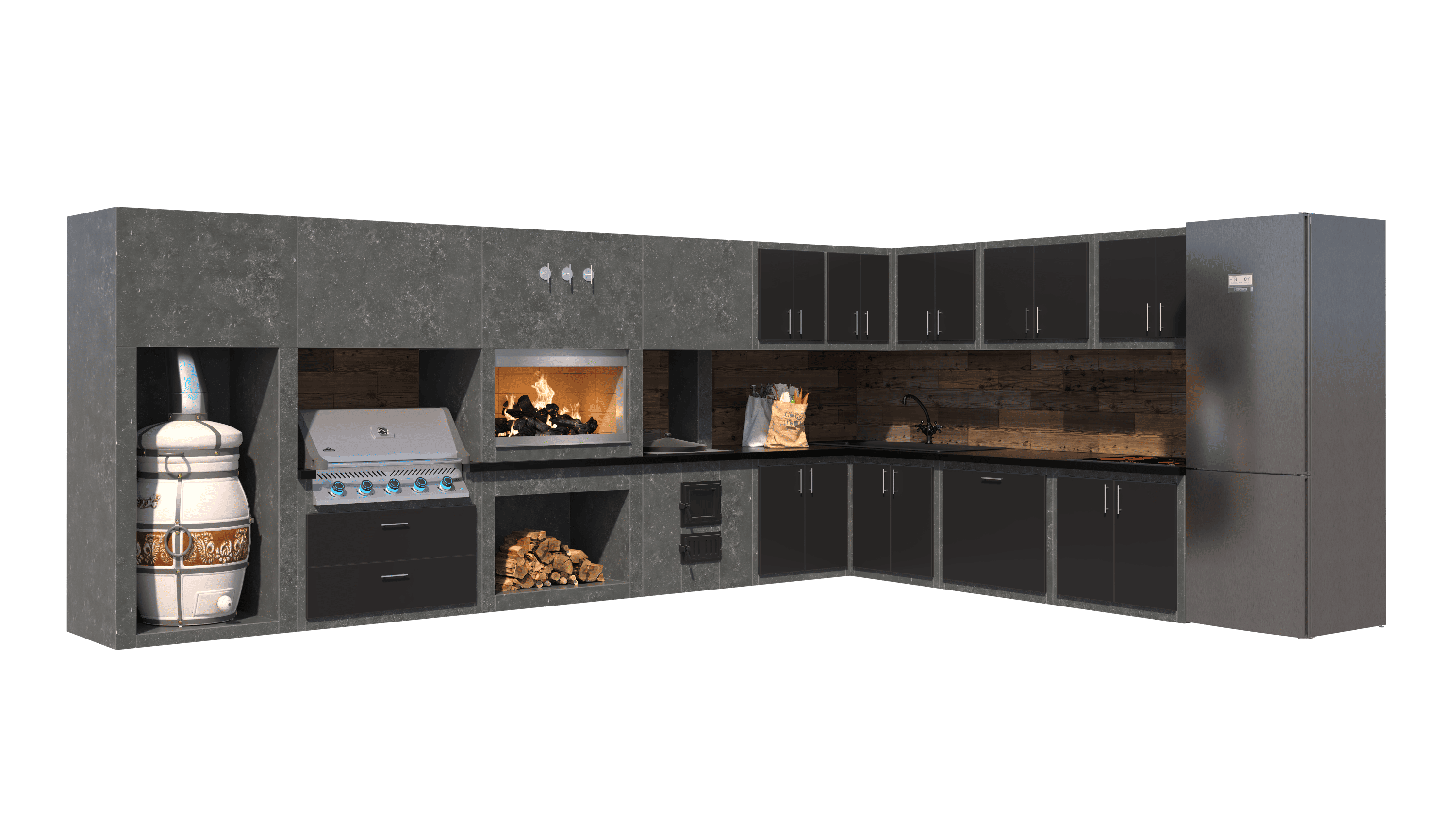 Это уже не просто барбекю, это стиль жизни. Высший класс! Для премиум-класса используются исключительно дорогостоящие материалы — натуральный камень, кирпич ручной формовки. Благодаря нестандартным видам отделки (изразцы, рисунки) ваше барбекю будет выгодно отличаться от других — иметь свой характер. Но за роскошной внешностью скрывается абсолютная практичность. Премиум-барбекю включает полный набор очагов —казан, мангал, тандыр. Можно добавить коптильню, русскую печь. Для полного комплекта, пожалуй, не хватает только одного — камина. Наша команда подберет для вас оптимальный вариант, который гармонично впишется в комплекс. А значит будет не только очень вкусно, но и уютно!